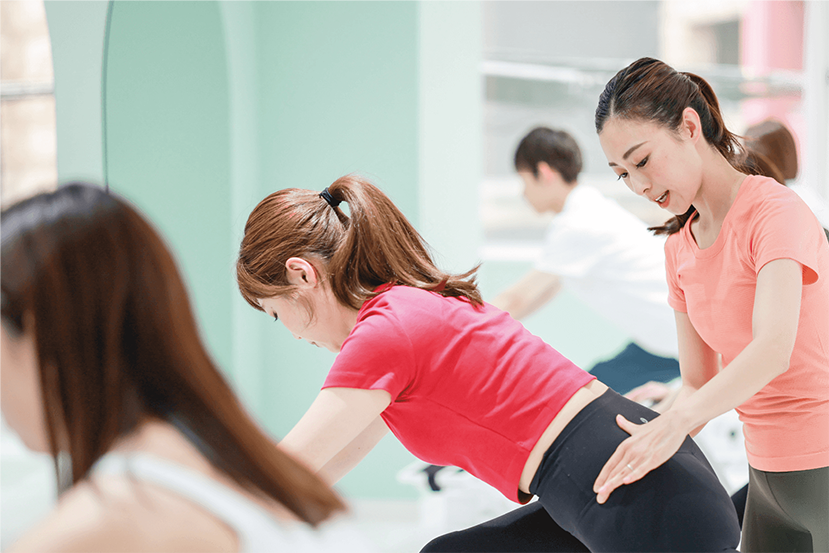 胸式呼吸を行いながら、身体の深層部にあるインナーマッスルを強化し、体全体を整える事で美しい姿勢やしなやかに動く体へと導きます。